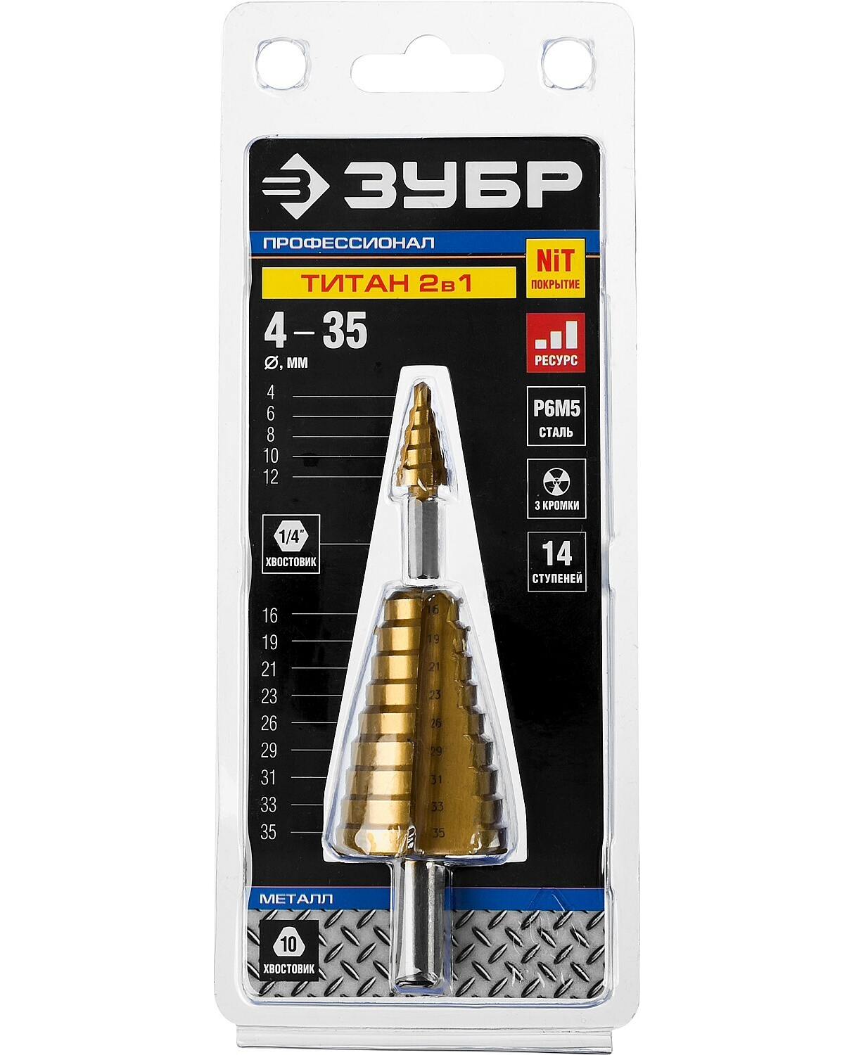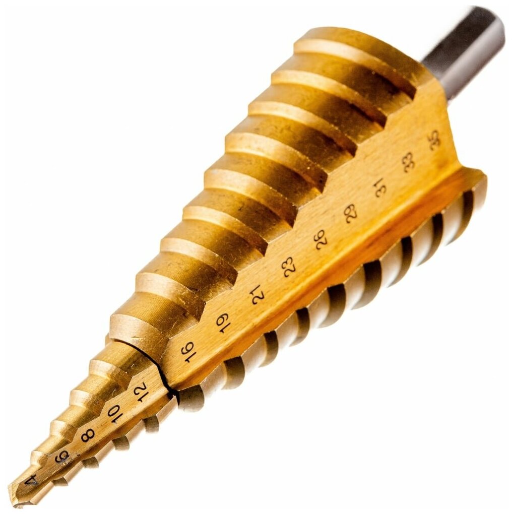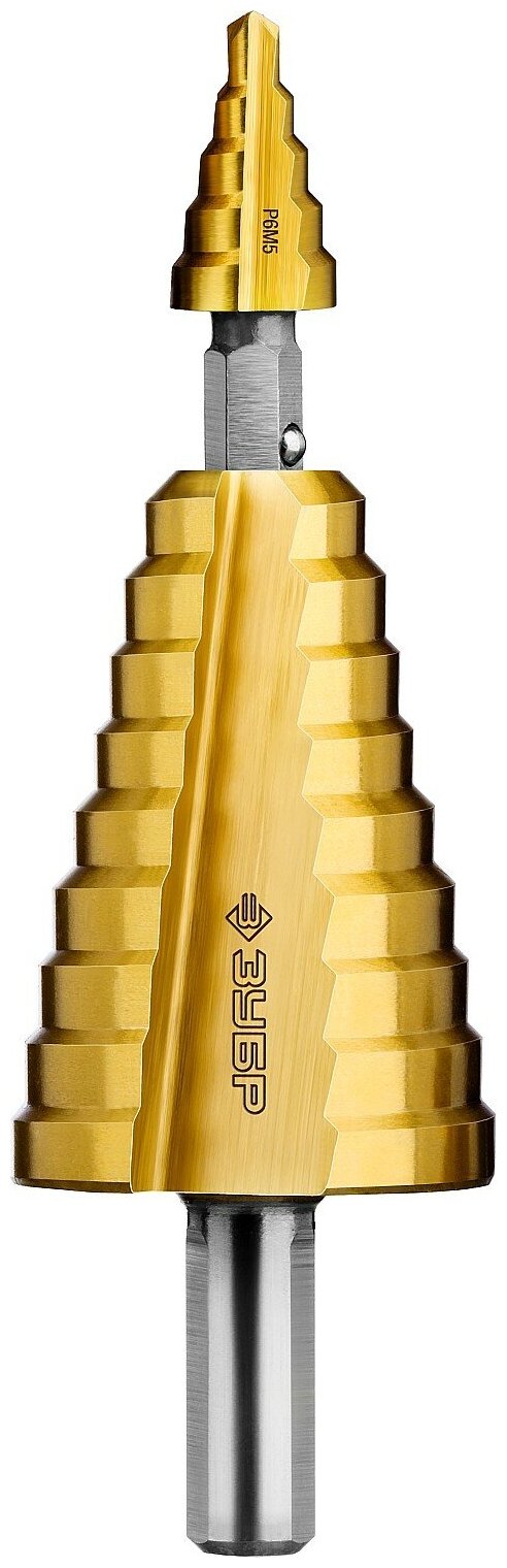| Доп. наименование Водопад | Сверло ступенчатое Зубр 29673-4-35 4-35мм, HSS-R, быстрорежущая сталь М2(S6-5-2) Р6М5, класс А 14 ступеней, кобальтовое покрытие |