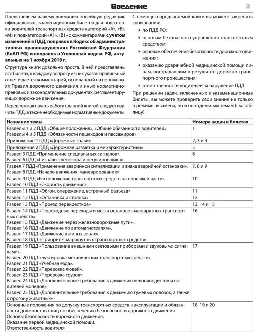 Экзаменационные билеты для приема теоретических экзаменов, актуальны на ноябрь 2018. Билеты сопровождаются подробными комментариями, в которых анализируются наиболее сложные и часто возникающие на дорогах ситуации. К изданию прилагается тренинг-программа, аналогичная той, с которой придется столкнуться на экзамене. Несколько обучающих и тестирующих режимов на основе официально утвержденных билетов подготовят вас к нему на самом высоком уровне. В книге предлагаются экзаменационные билеты для категорий "A", "B", "M" и подкатегорий "А1", "B1".