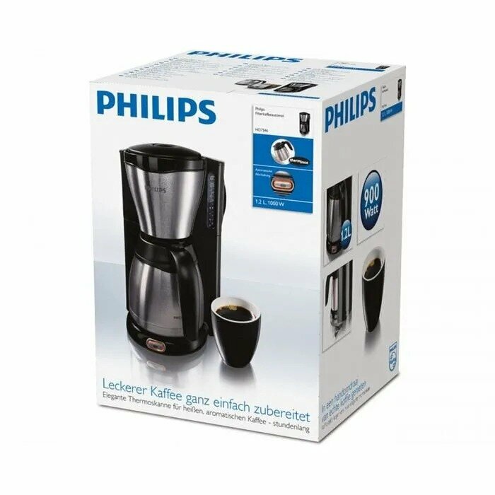 Кофеварка Philips HD 7546 Кофеварка Philips выгодно выделяется среди подобных приборов. В ней имеется чаша из нержавеющей стали для приготовления бодрящего утреннего напитка. Кофеварка Philips имеет опцию автоматического выключения. В данном приборе существует возможность остановить приготовление на любом этапе, отвечает за это функциональная система «капля-стоп». Эта мощная кофеварка (1 кВт) способна приготовить за один запуск до 15 чашек.