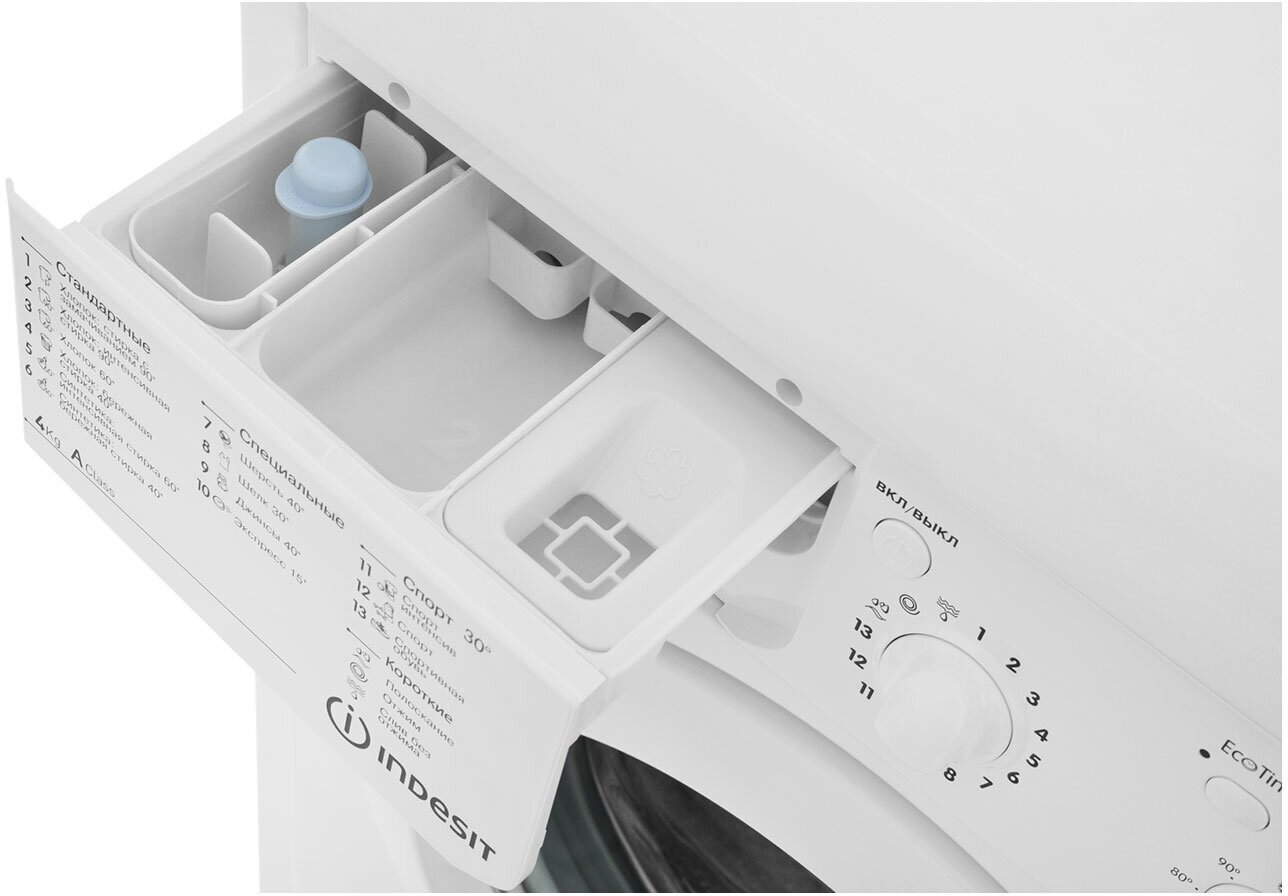 Стиральная машина Indesit располагает 16 программами, в число которых входят режим «предварительной стирки», позволяющий добиться эффективного очищения, и функция «экспресс», способная привести в порядок белье за 30 минут. Аппарат бережно обращается с вещами из шерсти, нижним бельем, спортивной и верхней одеждой, обувью. За один цикл прибор расходует всего 39 л воды.