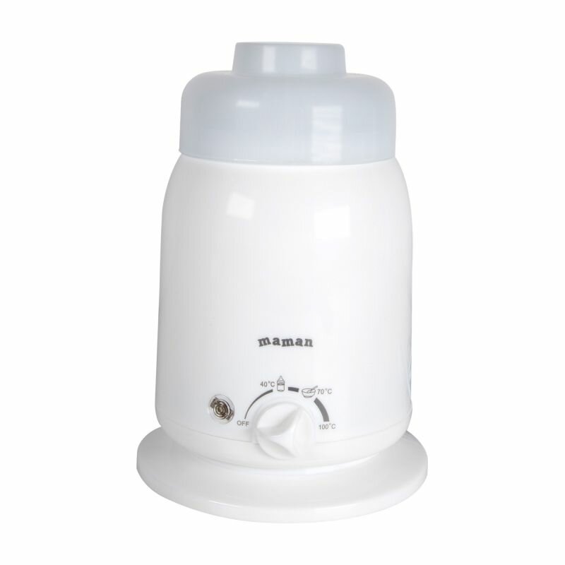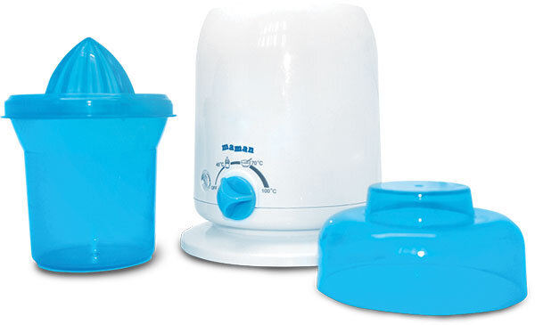 Подогреватель для бутылочек Maman - настоящая находка для современной мамочки. Компактное устройство позволит ей быстро разогреть детское питание в бутылочках, емкостью от 100 до 300 мл, или в стакане для подогрева. Простота использования сэкономит ее время: достаточно поставить регулятор температуры до нужной отметки, по завершению процесса индикатор погаснет. В комплекте есть ручная соковыжималка, которая позволит мамочке с легкостью приготовить сок для крохи.