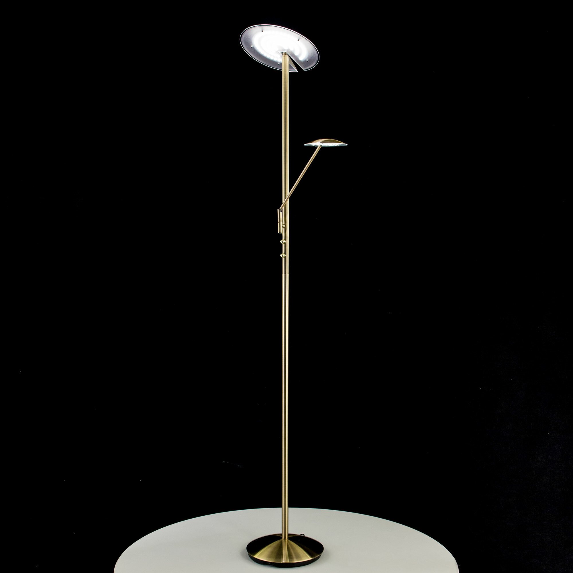 | Дополнительные характеристики | с двумя регулируемыми по направлению светодиодными головами, диаметр основания 28см; верхняя голова, диаметр - 28см с литым корпусом с диммером 20-100%; голова для чтения, диаметр - 13.5 см с литым корпусом |