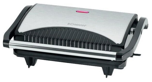Гриль Bomann MG 2251 CB предназначен для приготовления разнообразных блюд: панини, стейков, рыбы, овощей. Пища готовится быстро за счет постоянной температуры приготовления и двустороннего обжаривания. Две жарочные поверхности гриля, каждая площадью 23 х 14,5 см, оснащены антипригарным покрытием и дополнительными глубокими канавками. Еды, приготовленной на таком гриле, хватит на небольшую компанию.На корпусе гриля, изготовленного из нержавеющей стали, находится большая теплоизолированная ручка, световой индикатор питания и отсек для хранения шнура.