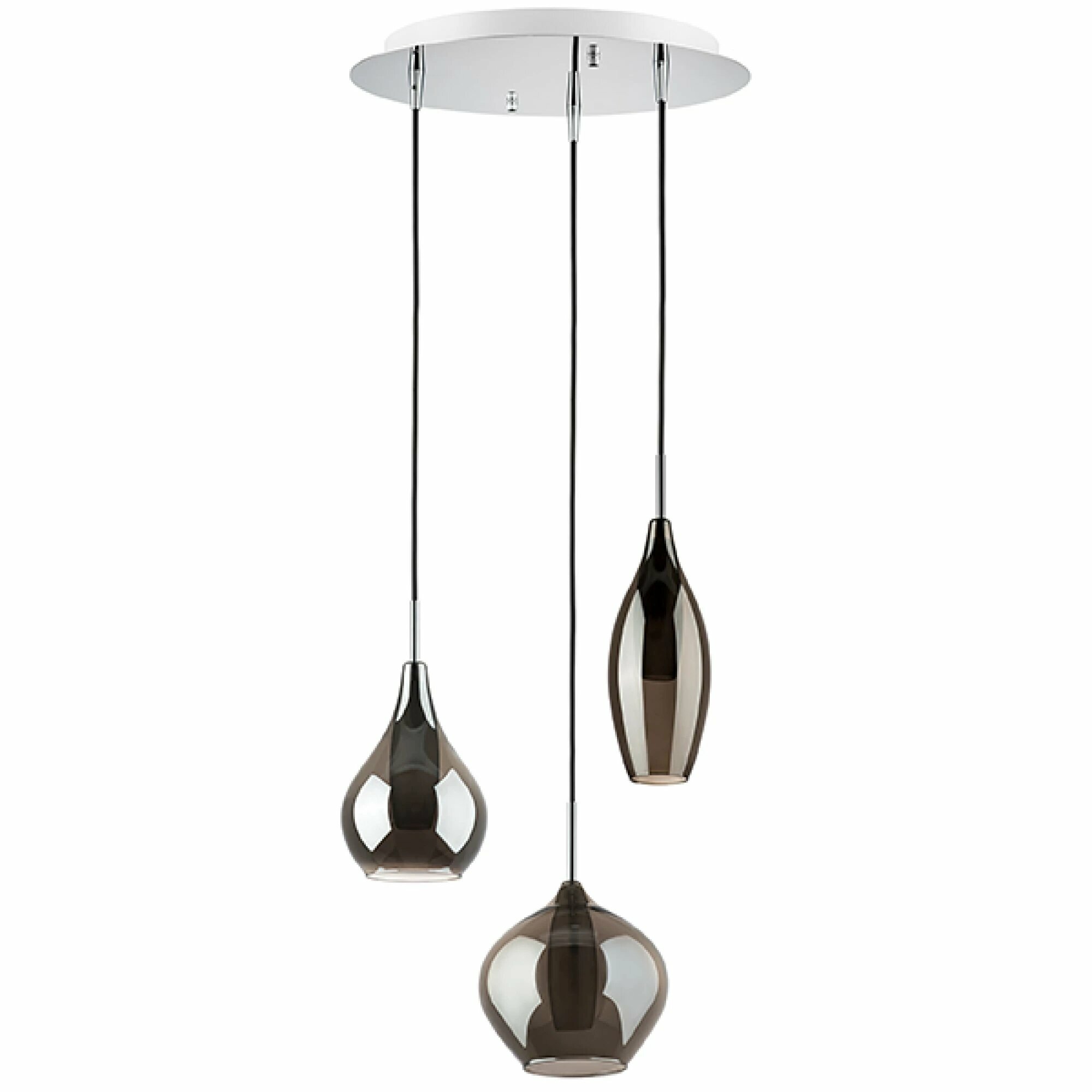 Подвесной светильник стиля модерн для гостиной, кабинета, прихожей или спальни имеет размеры 400x1500 мм. Арматура светильника окрашена в хромовый цвет. Лампы в комплекте - отсутствуют. В светильнике применяются галогеновая лампа или светодиодная LED-лампа. Цвет плафонов - дымчатый, с прозрачной поверхностью. Материал плафонов - стекло. Класс электробезопасности - I, степень пылевлагозащиты (IP) - 20. Максимальная мощность лампы (Вт) - 25. Светильник размещается на потолоке.