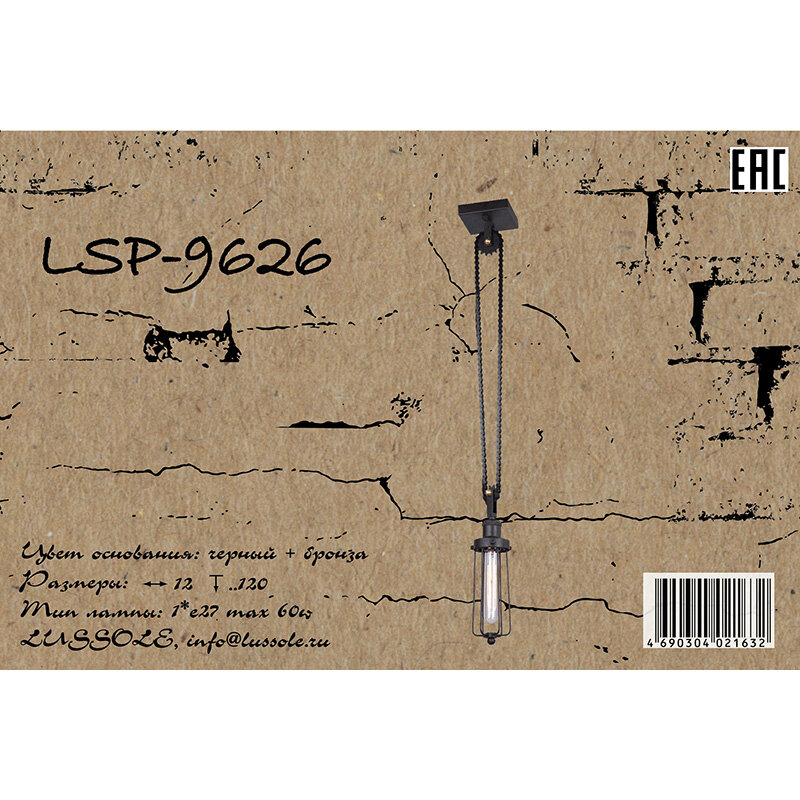 У нас Вы можете приобрести подвесной светильник LSP-9626 серии Loft от фабрики Lussole (Италия). Подвесные светильники в стиле классика выглядят дорого и солидно, гармонично впишутся в интерьер кухни. Металлическое основание черного цвета, материал плафона из металла. Подвесной светильник с максимальной мощностью 60W осветит комнату, площадью 3 кв.м.
