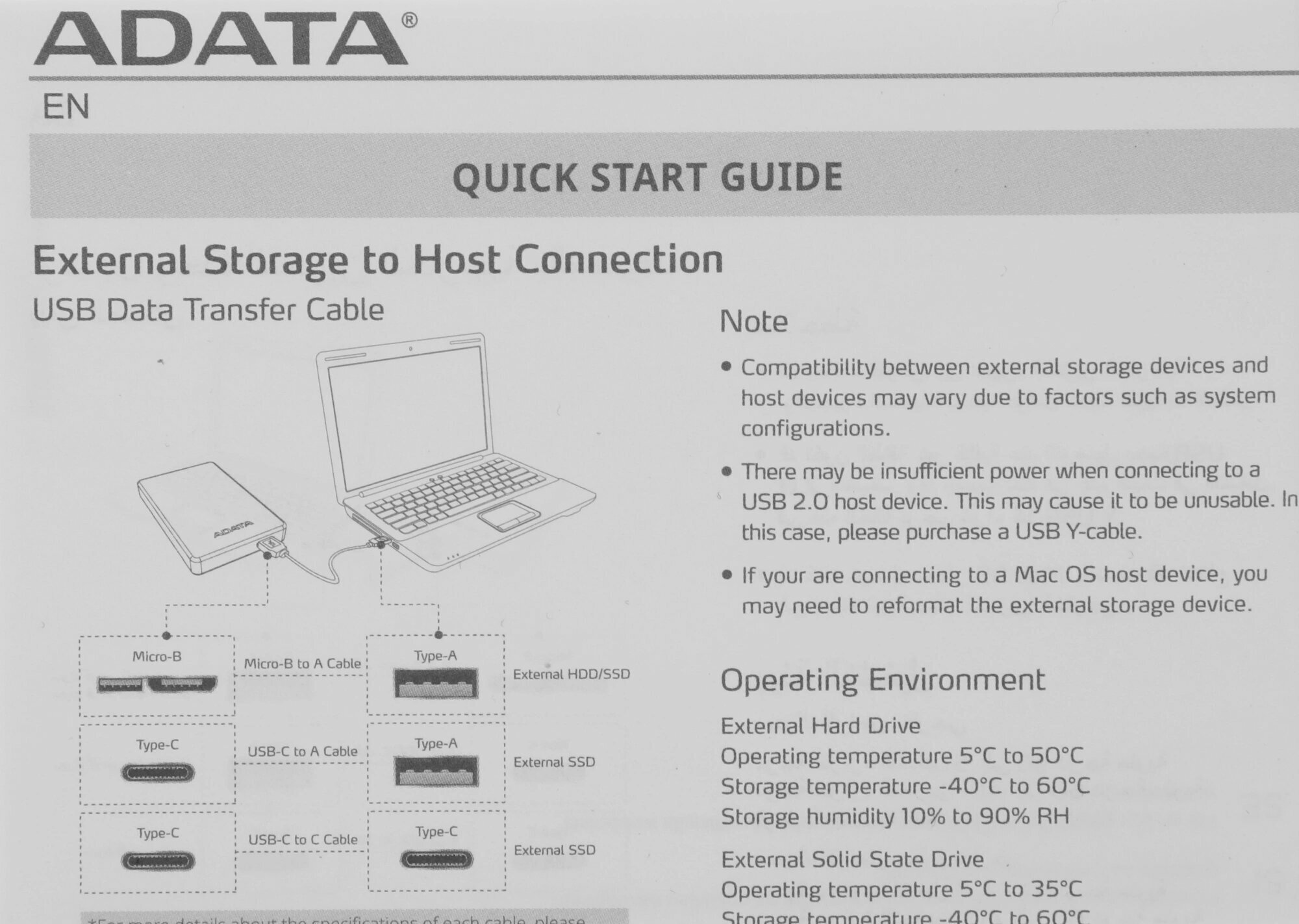 | Прочие особенности и свойства | Системные требования:, - Windows XP или более поздняя версия, - Mac OS X 10.6 (и выше), - Linux Kernel 2.6 (и выше), , Принадлежности: кабель USB 3.1, краткое руководство, Раб. температура |