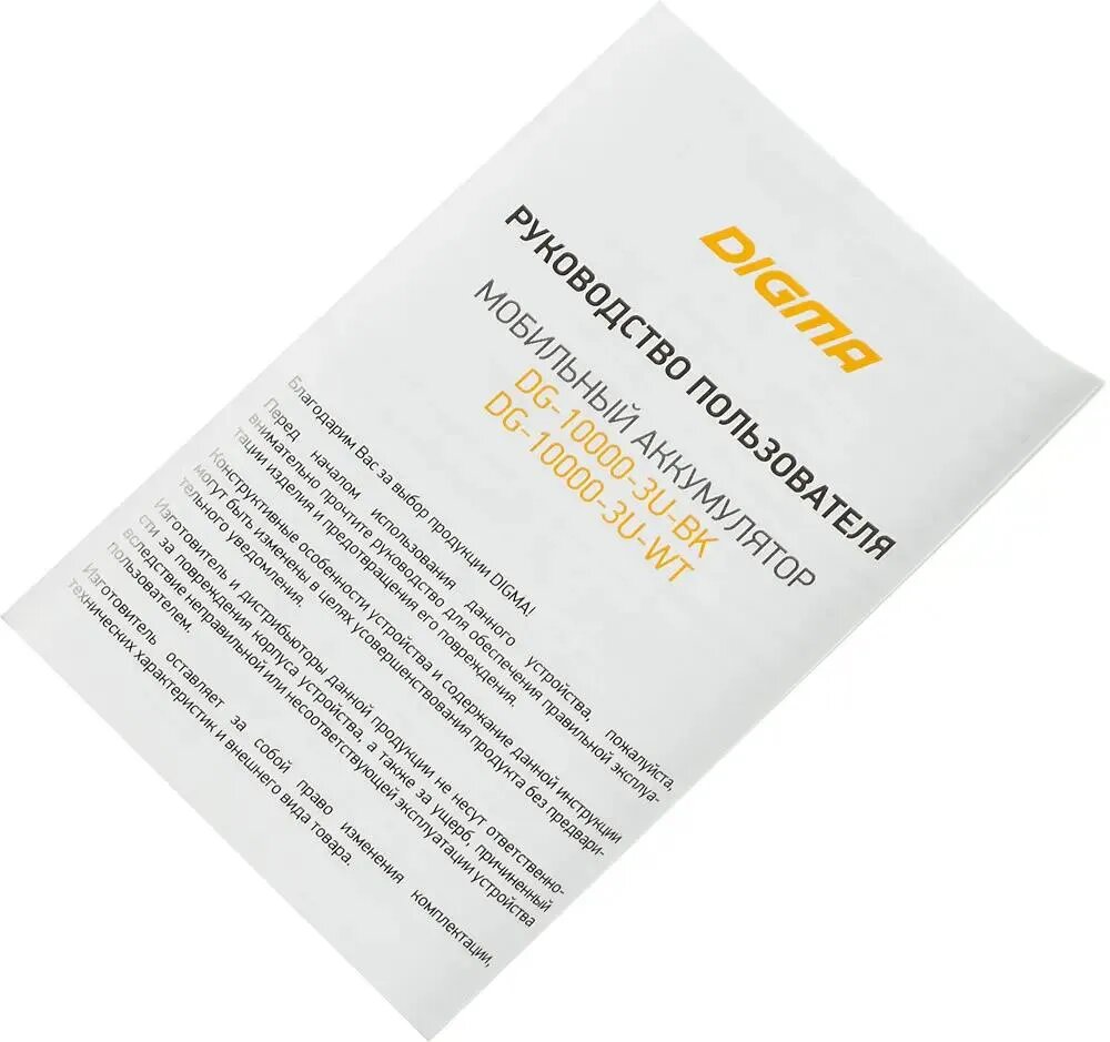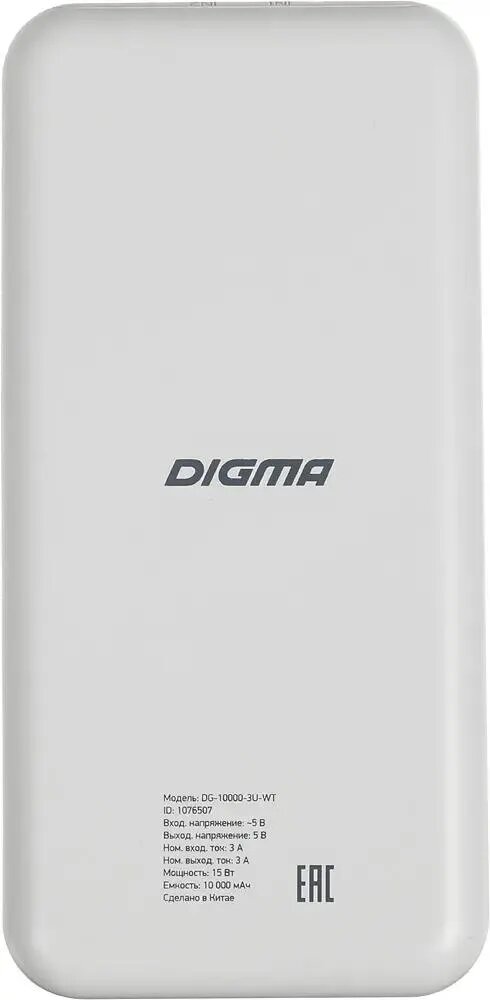 Внешний аккумулятор DIGMA 10000мAч белый DG-10000-3U-WT