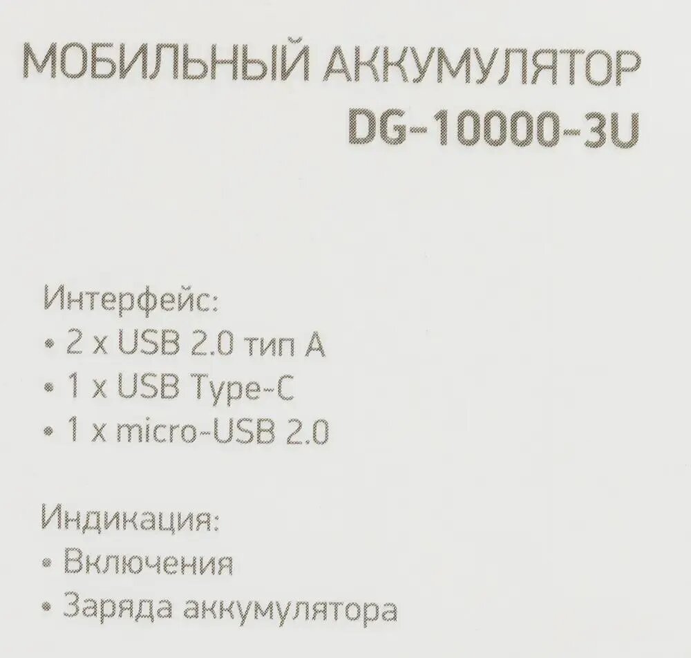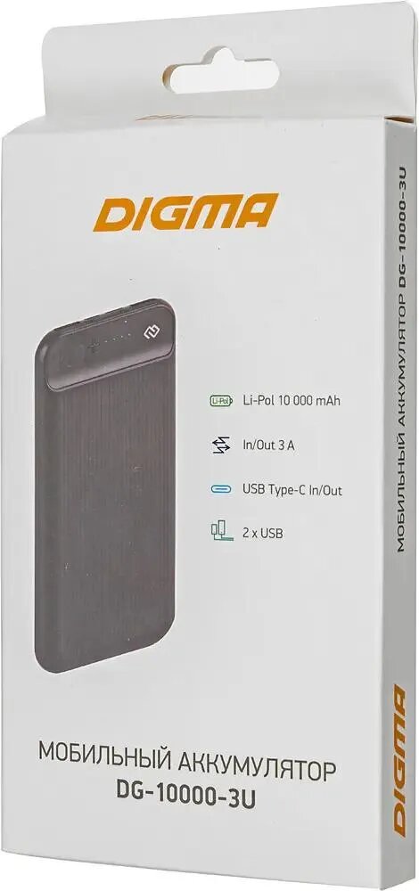 Внешний аккумулятор Digma DG-10000-3U предназначен для портативной зарядки смартфонов и планшетов. Главное его преимущество - ёмкость 10 000 мАч, а также индикатор уровня заряда батареи. Благодаря компактным размерам вы можете взять данную модель с собой куда угодно, не беспокоясь о заряде своих цифровых устройств. Аккумулятор оснащен тремя разъемами USB и позволяет заряжать устройства с силой тока 3 A.