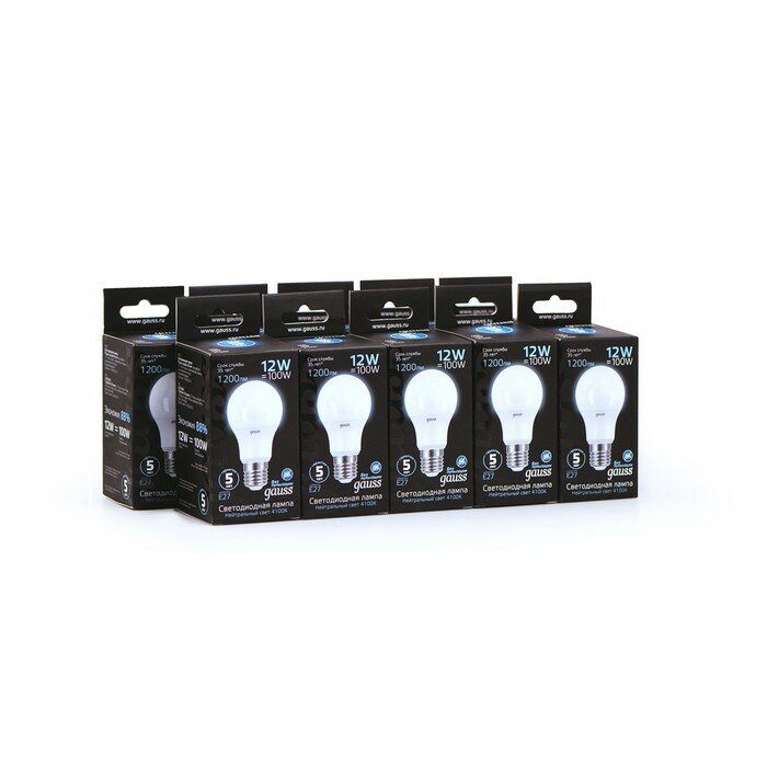 GAUSS 102502212 Светодиодная лампа LED A60 шар 12W E27 1200lm 4100K 1 10 50