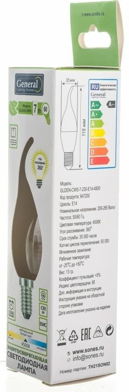 На сегодняшний день товар «General свеча на ветру E14 7W 4500K 4K 35x118 филамент (нитевидная) прозр. 647200 (арт. 583899)» можно купить с кешбеком в 1 магазине: Яндекс.Маркет