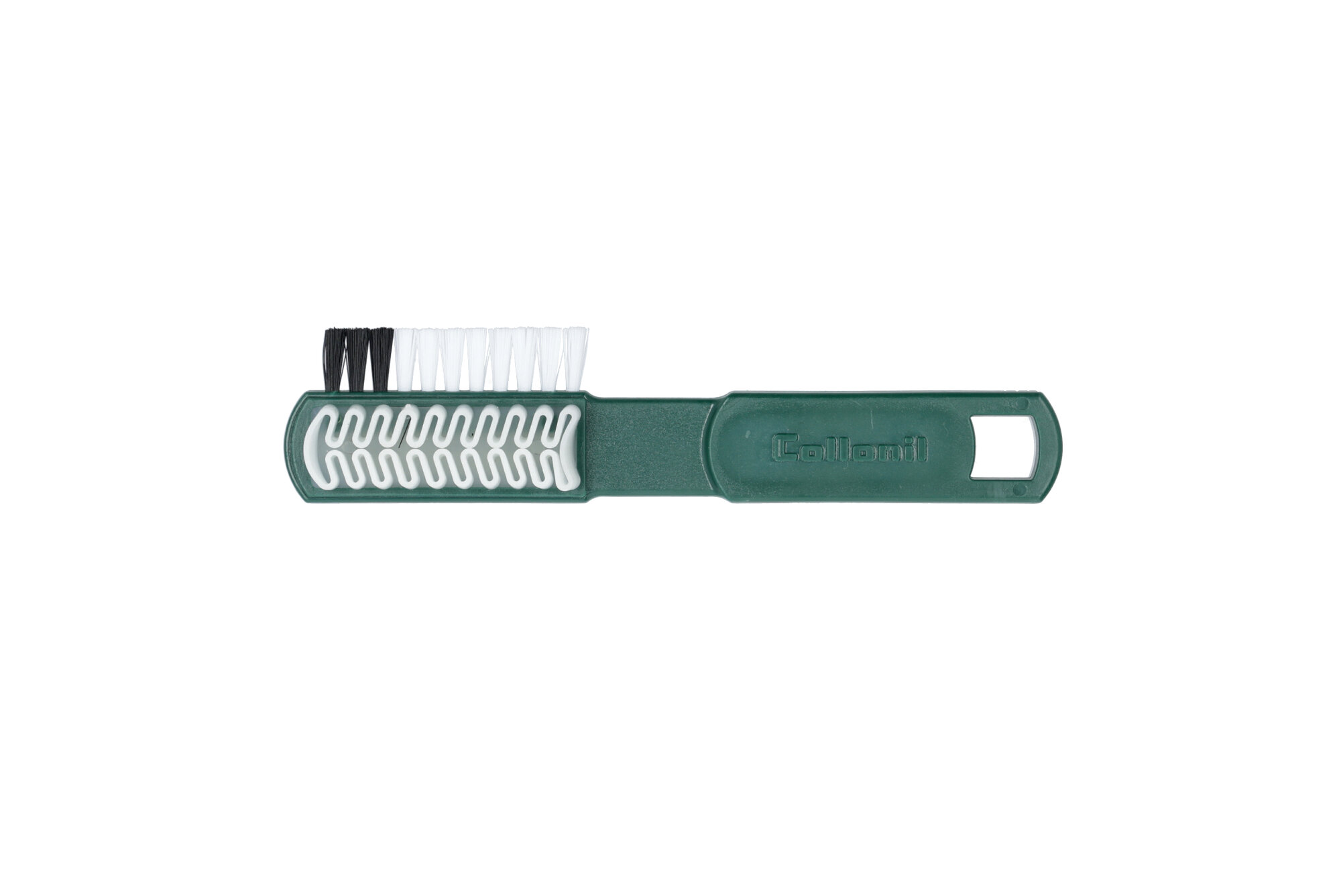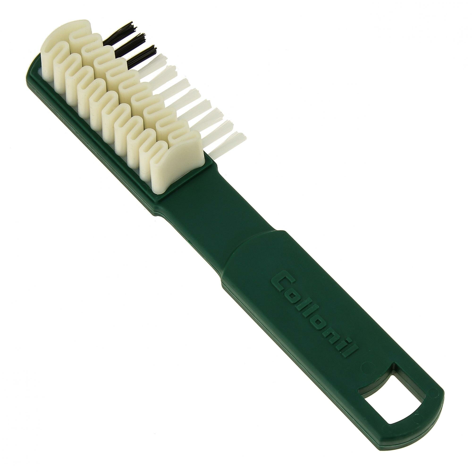 Креповая щетка для тщательной и мягкой очистки обуви из велюровой кожи и замши. Щетка дополнительно оснащена перлоновой щетиной, очищающей загрязнения даже в труднодоступных местах.