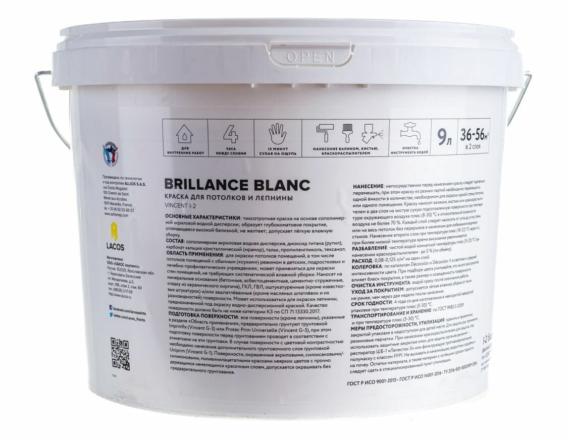 ОБЛАСТИ ПРИМЕНЕНИЯПредназначена для окраски стен и потолков сухих помещений по бетонным, асбестоцементным, оштукатуренным, кирпичным и гипсокартонным основаниям, не требующих систематической влажной уборки. Разрешена для окраски потолков помещений с обычным («сухим») режимом в детских садах, школах и лечебно-профилактических учреждениях (коридоров, игровых, буфетных, спален, музыкальных, гимнастических и спортивных залов, классных комнат, кабинетов учителей и врачей, палат, холлов, вестибюлей, столовых, физиотерапевтических кабинетов и т.п.).ПОТРЕБИТЕЛЬСКИЕ СВОЙСТВАОбразует матовое “дышащее” покрытие, отличающееся высокой белизной, выдерживает протирание влажной тряпкой. Краска морозоустойчива (выдерживает не менее 5 циклов замораживания-оттаивания при – 40 °С), наносится ровным слоем, скрывает дефекты основания, не собирает пыль и не осыпается. Экологически безопасная.