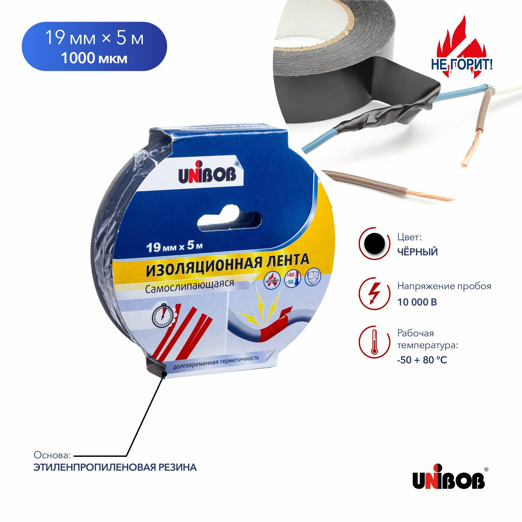 Клейкая лента электроизоляционная 371122 19 мм х 5 м самослипающаяся UNIBOB 211774
