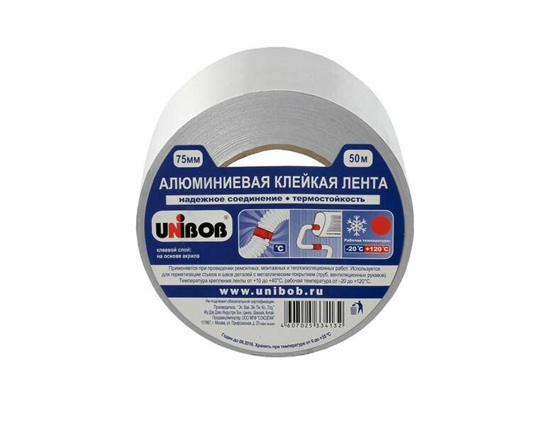 Клейкая лента алюминиевая 517314 серая 75 мм x 50 м x 70 мкм UNIBOB Unibob