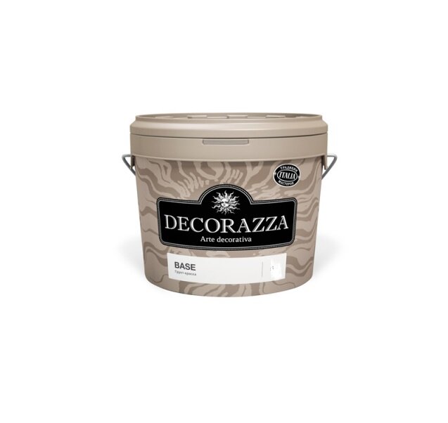 Decorazza BASE (БЭЙС)Подложечная грунт-краска Decorazza Base предназначена для цветового выравнивания основания. Экологичный подготовительный продукт также позволяет улучшить сцепление, уменьшить расход финишных декоративных материалов Decorazza за счет снижения впитывающей способности основания. Производится в белом базовом цвете, колеруется универсальными пастами.