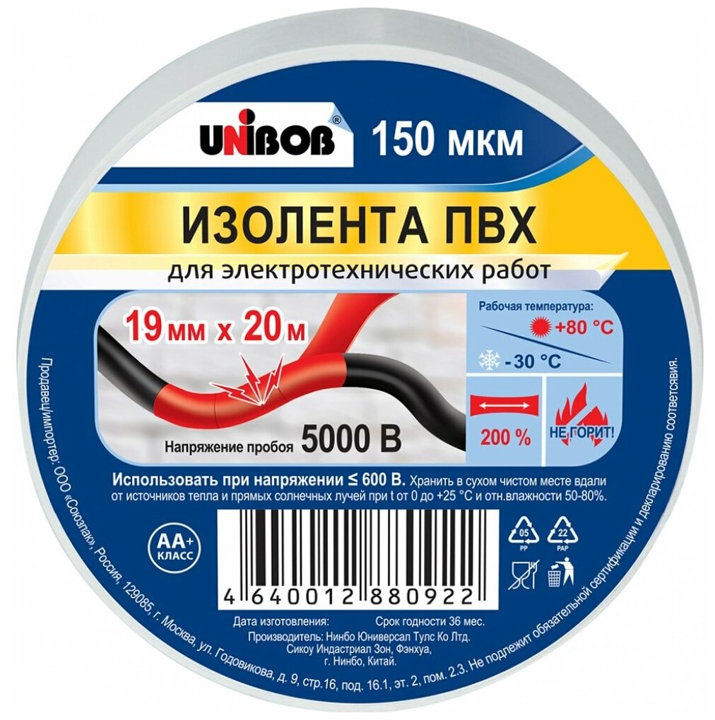 Лента Unibob электроизоляционная белый 19 мм х 20 м 211754