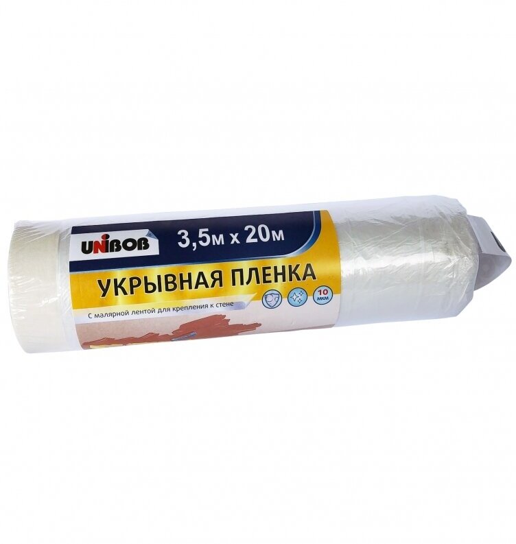 Сервис сравнения цен СкидкаГИД предлагает сравнить цены на товар «Пленка защитная Unibob с малярной лентой 055 x 33 м»
