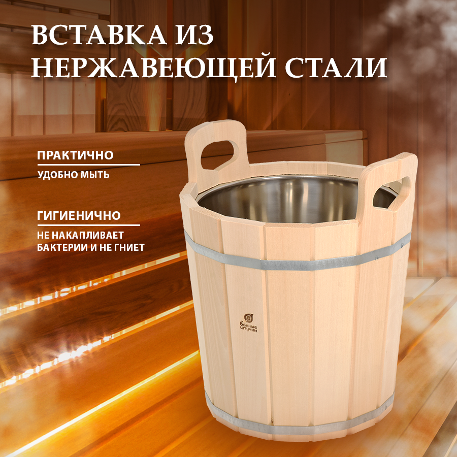 Банные штучки Запарник с нержавеющей вставкой 20 л 1 шт. 20 л 36 см 35 см 35 см 4 кг бежевый 1 33219