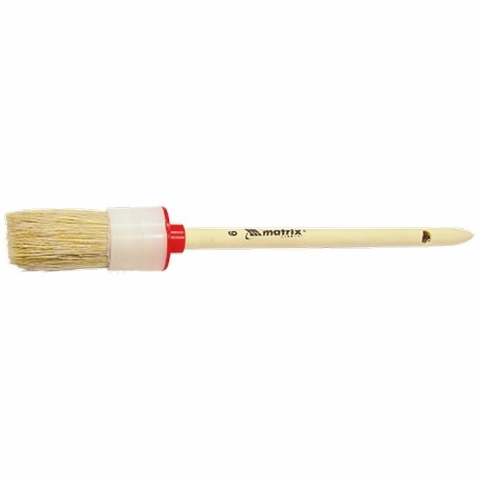 Круглая кисть Matrix № 4 предназначена для работ с масляными красками и лаками, устойчива к агрессивным составам. Применяется для окраски и грунтовки небольших по площади поверхностей. Щетина кисти надежно закреплена пластмассовым бандажом. Ручка изготовлена из дерева.