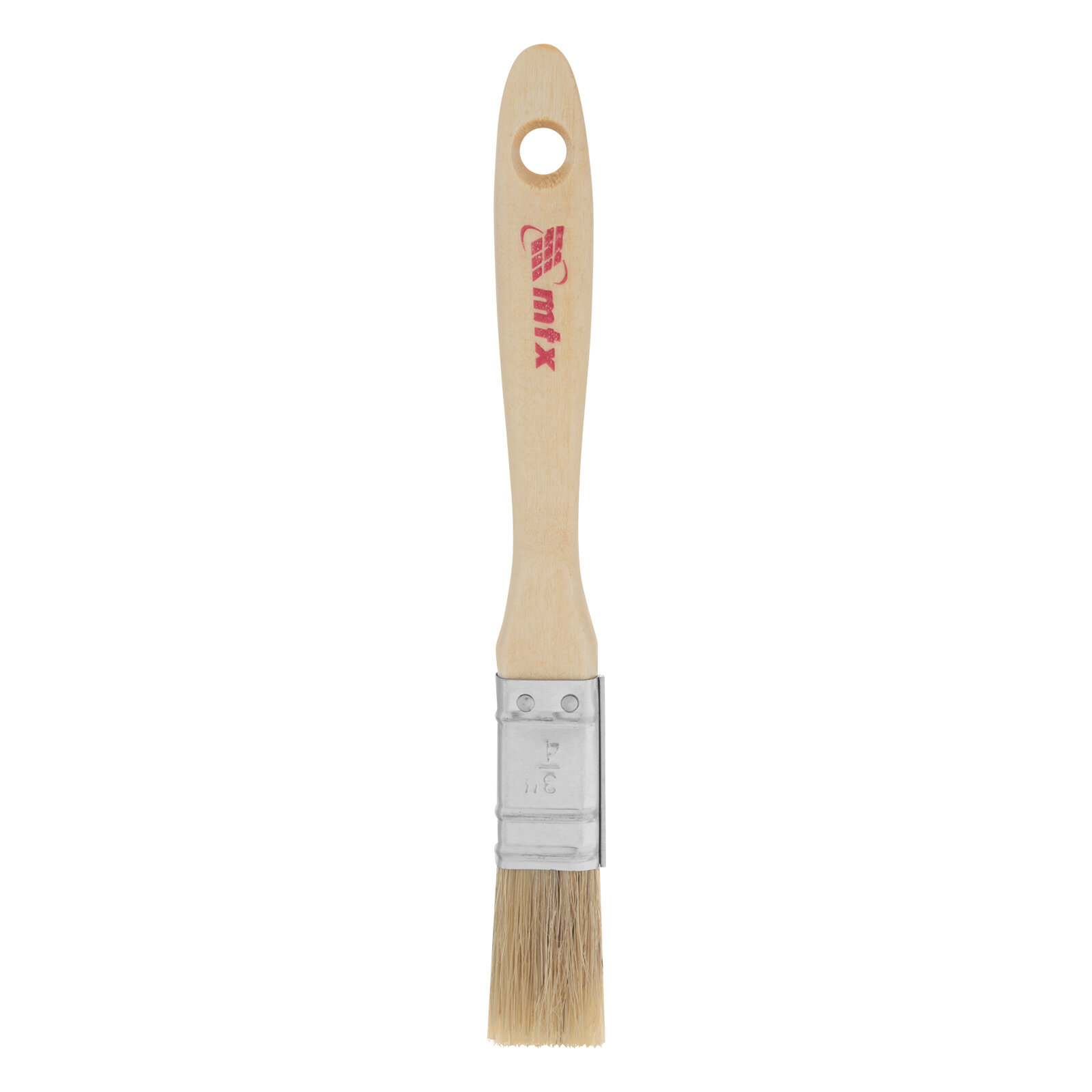 Ворс кисти из натуральной щетины двойной выварки. Щетина расщеплена на концах. Толщина кисти от 10,5 до 22 мм. Щетина кисти надежно закреплена металлическим бандажом с антикоррозийным покрытием. Деревянная лакированная ручка с отверстием для подвешивания