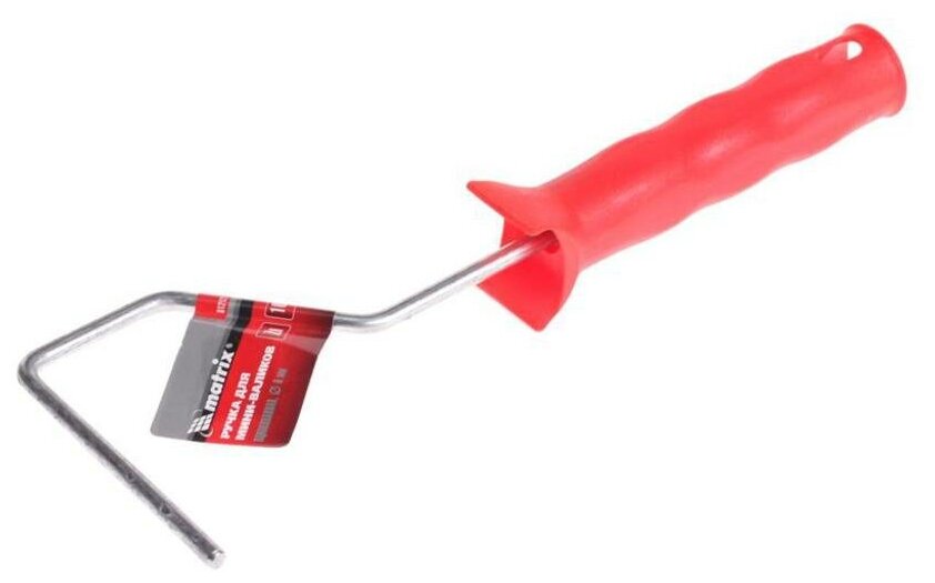 Оцинкованная ручка для мини-валиков Matrix диаметром 6 мм предназначена для быстрой установки сменных шубок шириной 100 мм. Используется для нанесения лакокрасочных покрытий на небольшие участки окрашиваемой поверхности.Преимущества Повышенная прочность — пластмассовая рукоятка не треснет и не сломается во время работы Долговечность — бюгель из оцинкованной стали устойчив к коррозии Расширенные возможности — ручку можно использовать с телескопическим удлинителем, что облегчает окраску труднодоступных мест Эргономичность — благодаря удобной рукоятке рука не устает даже при длительном окрашивании