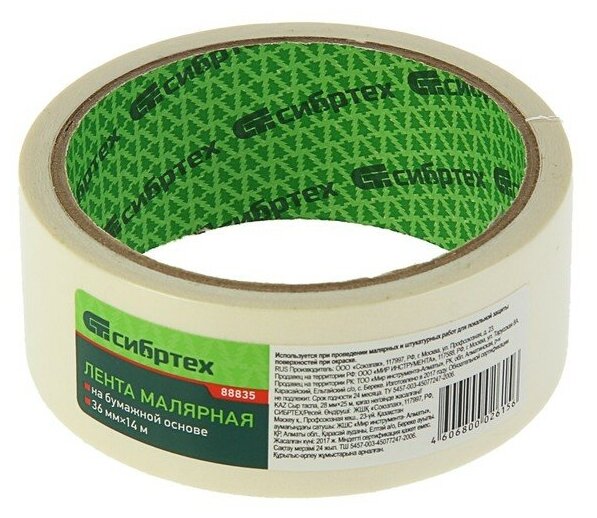 Лента «СИБРТЕХ» используется для защиты поверхностей от царапин, сколов, брызг краски и лака при проведении малярных и строительных работ. Изделие выполнено из бумажного материала и имеет клеевую основу. Легко снимается и не оставляет следов.