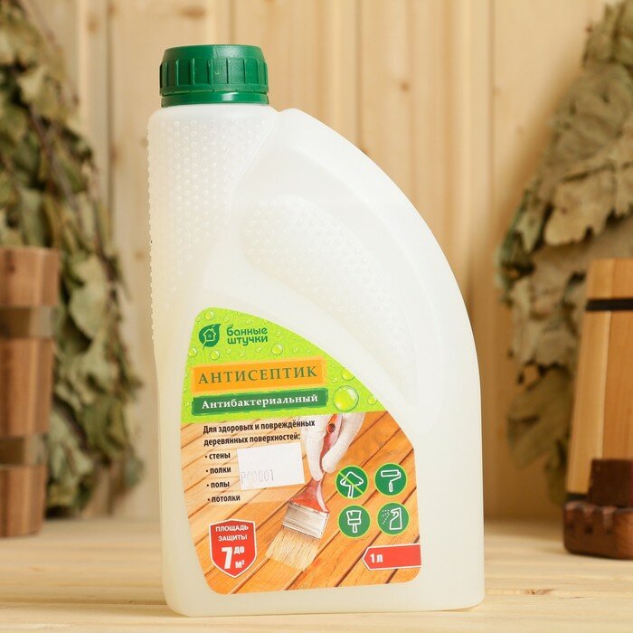 Антисептик Банные штучки для бань и саун. Предназначен для защиты древесины, от действия дереворазрушающих и деревоокрашивающих плесневых грибов в саунах, парных, моечных и прилегающих к ним помещениях. Предотвращает развитие болезнетворных микробов, спор грибков. Обеспечивает надежную защиту при циклическом увлажнении, конденсационном увлажнении и высоких перепадах температур. Объем: 3л.
