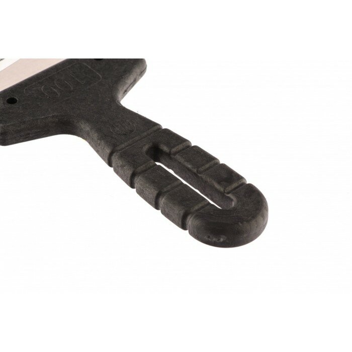 Полотно шпателя изготовлено из нержавеющей стали 30Х13 (12Х17). Рабочая поверхность инструмента имеет квадратные зубья. Облегченная ручка из ударопрочной пластмассы. Ручка шпателя имеет специальную (изогнутую) форму, что обеспечивает максимально удобную работу. Шпатель предназначен для нанесения, выравнивания и сглаживания шпаклевочного слоя на больших и малых поверхностях.