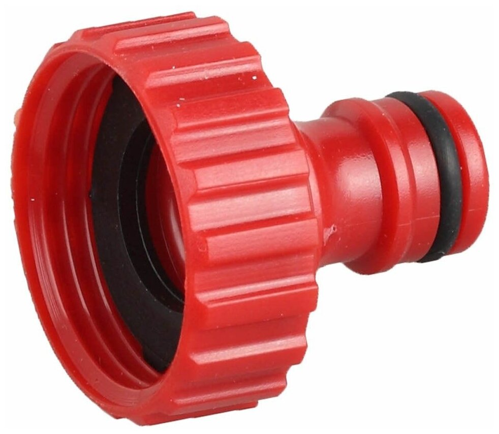Изготовлен из ударопрочного пластика. Уплотнительные кольца изготовлены из EPDM (этилен-пропилен-диен-метилен) резины повышенной эластичности, устойчивой к температурным и химическим воздействиям. Применяется в качестве переходника между соединителем и водопроводной трубой или краном с внешней резьбой 1”.