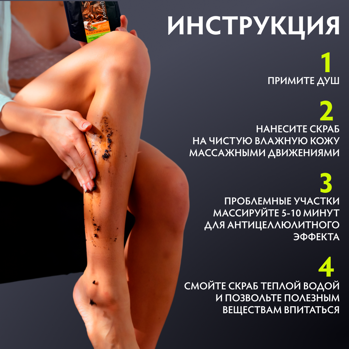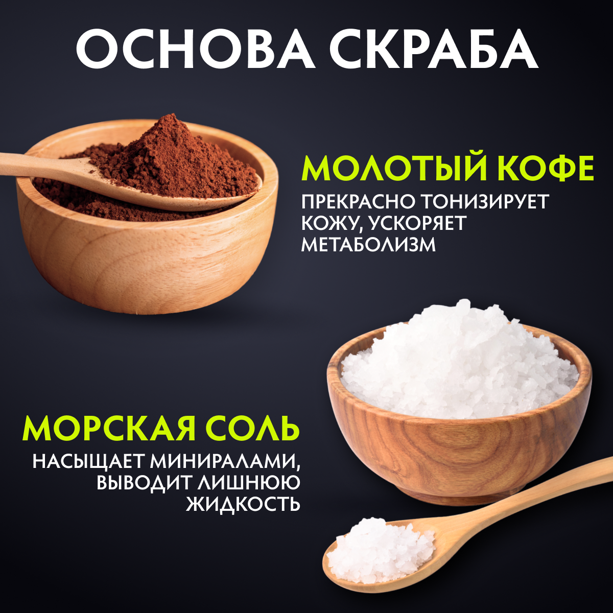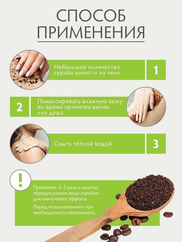 | Состав | Coffee Seed Powder (кофе молотый), Sea Salt (морская соль), Brown Sugar (неочищенный тростниковый сахар), Argania Spinosa (масло арганы), Vinis vinifera Seed Oil (масло виноградных косточек),Prunus Dulcis Oil (масло сладкого миндаля), Tocopheryl Acetate (витамин Е). |
