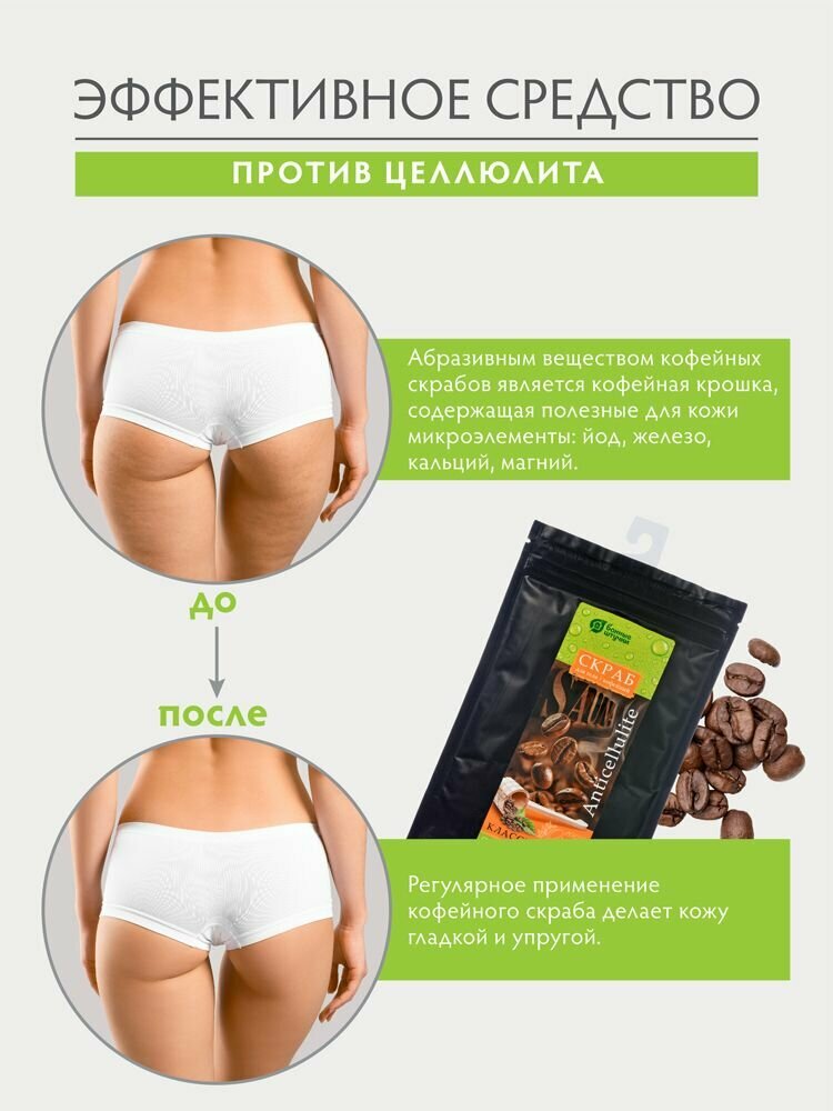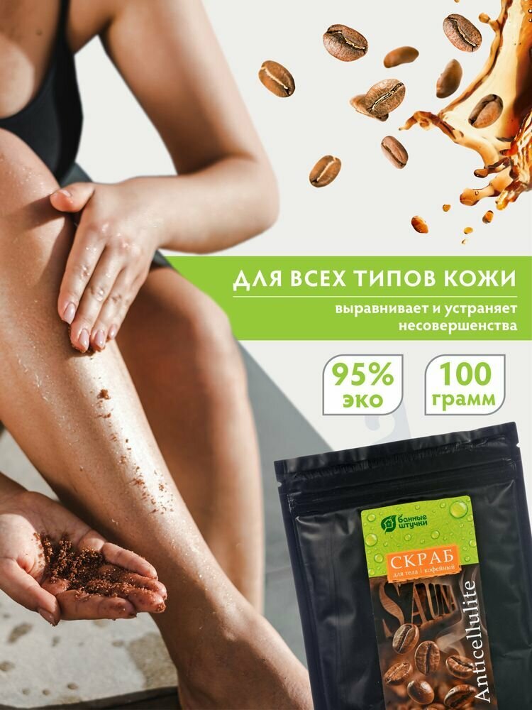 Кофейный скраб "Банные штучки" эффективно очистит кожу от омертвевших клеток. Кофеин прекрасно тонизирует кожу, улучшает обменные процессы, ускоряет метаболизм. Молотый кофе тщательно отшелушивает ороговевшие частички, открывает поры и улучшает микроциркуляцию крови. Натуральные масла эффективно питают и увлажняют кожу, делая ее гладкой и упругой уже после первого применения. Вес: 100г. Срок годности:36мес.