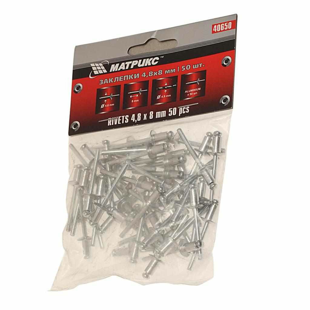 Заклепки для электрозаклепочников MATRIX, 4,8 х 8 мм, 50 шт, предназначены для скрепления различных деталей между собой с помощью заклепочников. Изготовлены из алюминия и подходят для соединения деталей из кожи, пластика, металла и прочих материалов.