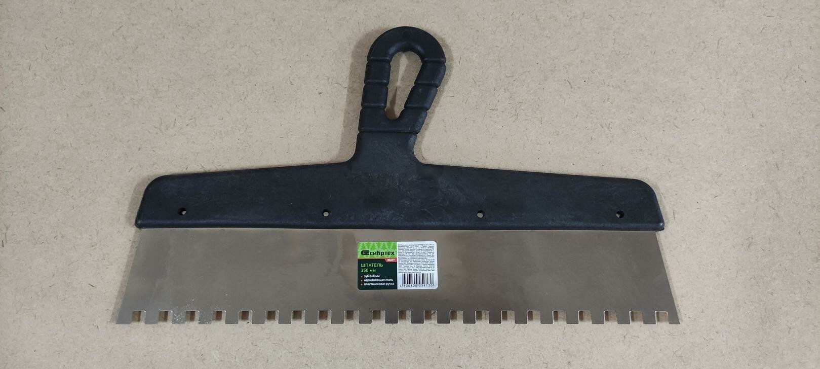 Зубчатый шпатель СИБРТЕХ имеет облегченную, эргономичную ручку, что гарантирует удобство использования. Изделие предназначено для нанесения и разравнивания слоя шпаклевки на рабочей поверхности.