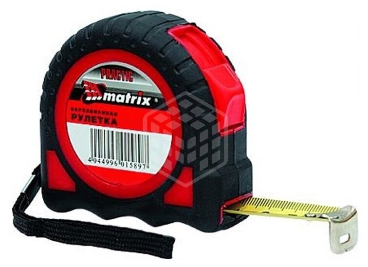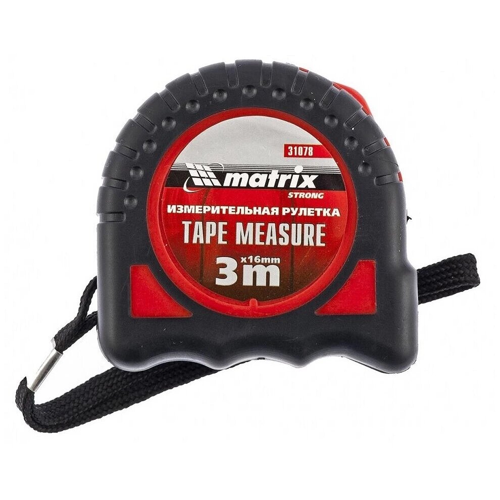 Рулетка Matrix Strong , 3 м х 16 мм, в обрезиненном корпусе, предназначена для определения размеров и расстояний. Частично обрезиненный корпус из ударопрочного ABS-пластика устойчив к повреждениям, что уменьшает риск его поломки в случае падения или удара. Стальная лента с зацепом, прикрепленным заклепками, рассчитана на длительное использование. Рулетка пригодится на строительной площадке, во время ремонта, а также дома или на даче. ПреимуществаТочность полученных результатов увеличена благодаря подвижному зацепу, позволяющему снизить погрешность при проведении измерений. Кнопка-фиксатор облегчает работу с инструментом, удерживая ленту в выдвинутом положении. Рулетку можно подвешивать на запястье при помощи нейлонового ремешка. Инструмент можно закрепить на поясе посредством металлической клипсы-зажима.
