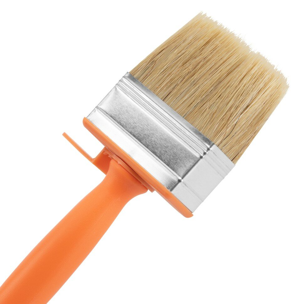Ворс кисти макловицы – натуральная щетина, расщепленная на концах. Щетина кисти надежно закреплена металлическим бандажом с антикоррозийным покрытием. Пластмассовая ручка, утолщенная в зоне охвата, имеет отверстие для подвешивания, а также специальное приспособление для крепления на емкость.
