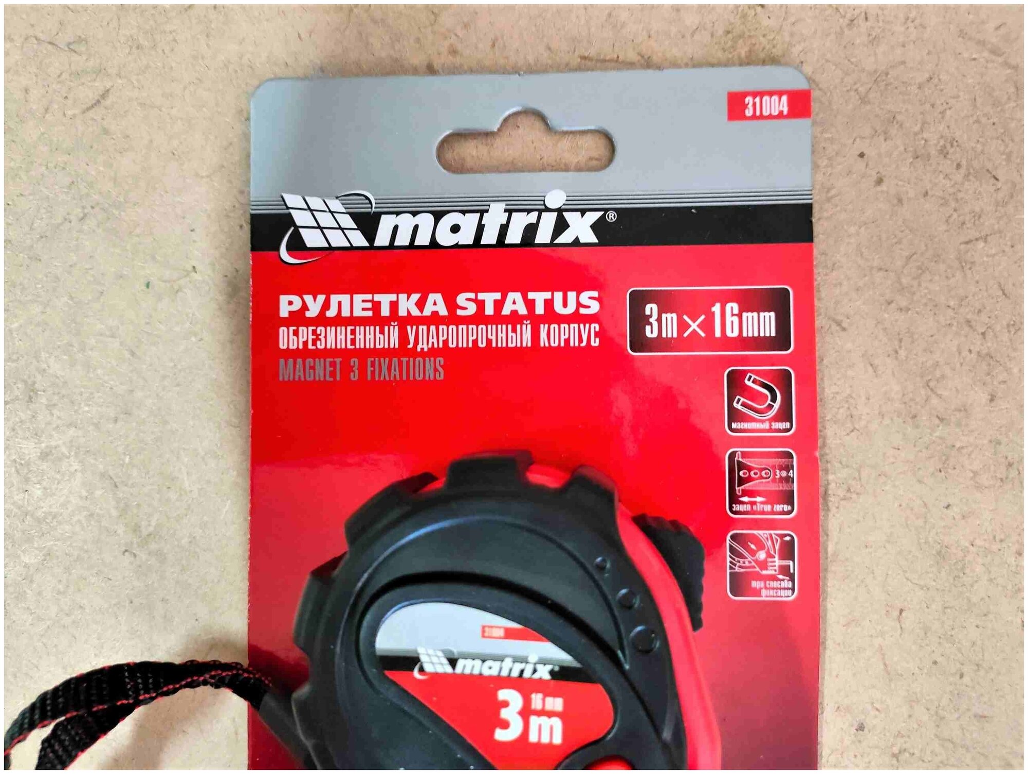 Рулетка MATRIX status magnet 3 fixations 3мх16мм обрезиненный корпус зацеп с магнитом