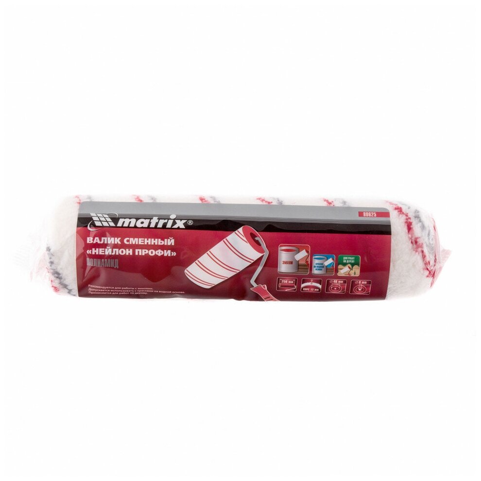 Сменный валик Matrix Нейлон Профи с полиамидным ворсом длиной 12 мм и диаметром ролика 48 мм подходит к ручкам диаметром 8 мм. Он предназначен для нанесения любых типов лакокрасочных материалов на поверхности с гладкой текстурой и небольшим рельефом. Ширина 250 мм позволяет эффективно и быстро окрашивать большие площади: стены, потолки, фасады и т.д. Высокое качество работ обеспечивает полиамидная шубка с длиной ворса 12 мм.