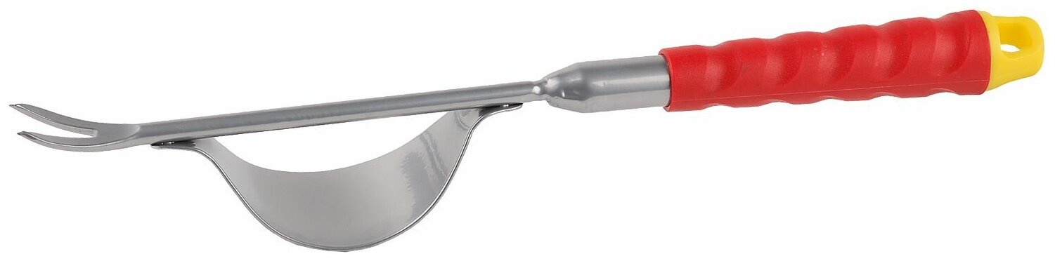 Рабочая часть изготовлена из высококачественной углеродистой стали с антикоррозионным покрытием. Эргономичная рукоятка имеет ребристый рельеф для защиты от скольжения. Использование удлиняющего стержня позволяет снизить утомляемость при выполнении садовых работ (в комплект поставки НЕ входит). Применяется для удаления сорняков с развитой стержневой корневой системой.