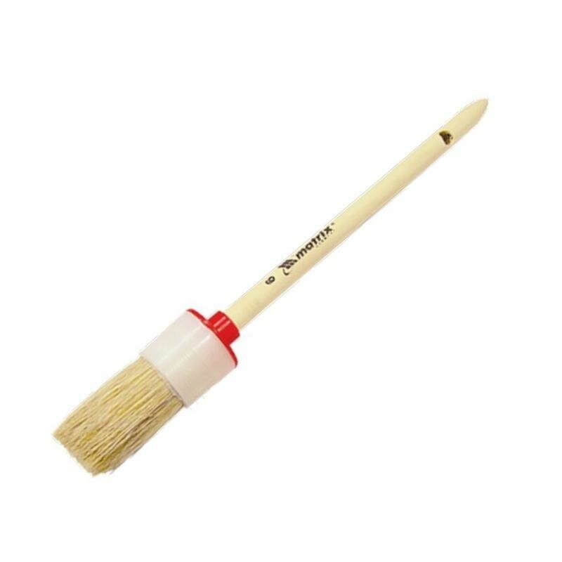 Круглая кисть Matrix №14 предназначена для работ с масляными красками и лаками, устойчива к агрессивным составам. Ворс кисти из натуральной светлой щетины, расщепленной на концах и закрепленной пластмассовым бандажом.