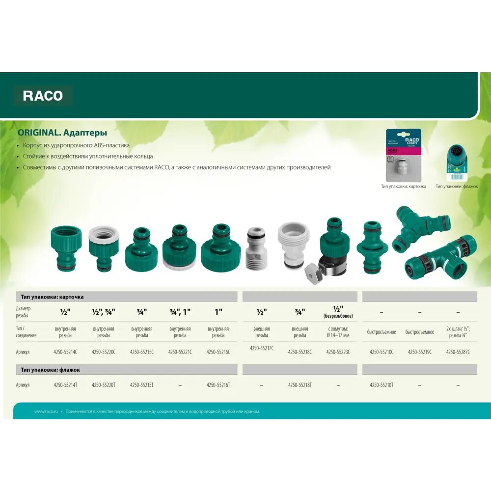 | Прочие особенности и свойства | Соединитель RACO "ORIGINAL" шланг-насадка, универсальный, 1/2"-3/4",Применяются для быстрого и надежного соединения поливочного шланга диаметром 1/2"-3/4" с адаптером, переходником, тройником или поливочной насадкой. |