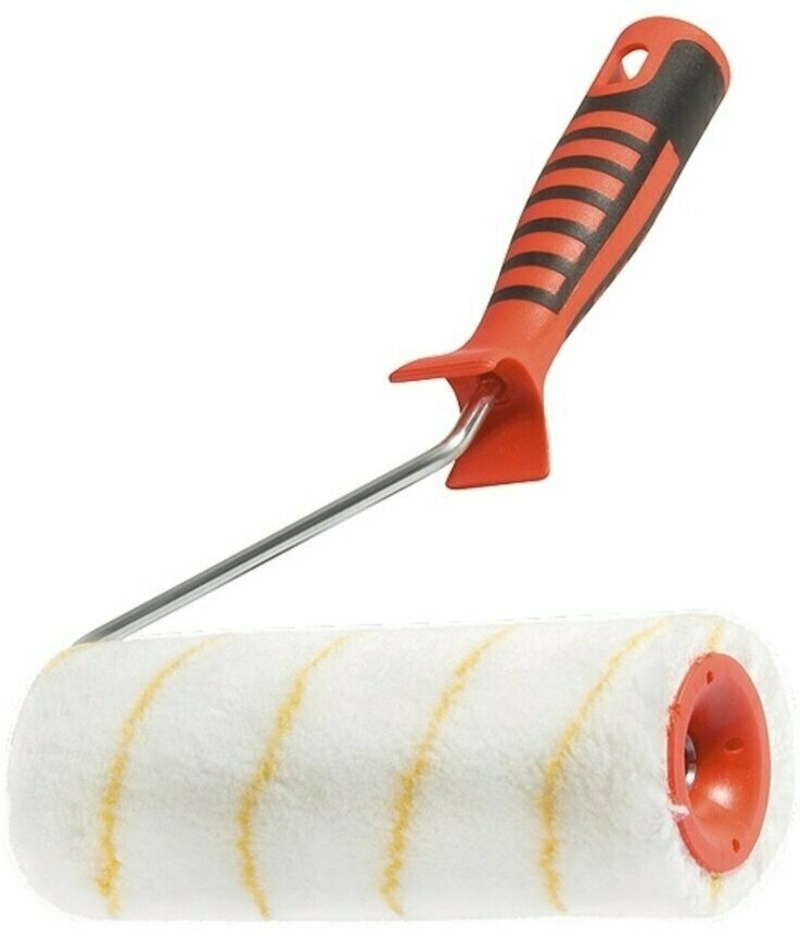 Произведен по технологии Termofusion. Термически приклеенная шубка валика износостойкая и бесшовная, создает идеально ровное покрытие. Улучшенная конструкция ролика обеспечивает легкое и свободное вращение. Материал шубки валика ― полиакрил. Применяется для работ с водно-дисперсионными красками и красками на основе химических растворителей. Предназначен для нанесения краски на средне шероховатые поверхности. В комплекте двухкомпонентная ручка, бюгель оцинкован.