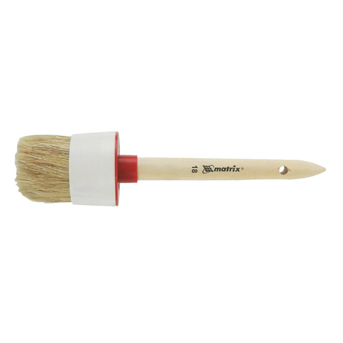 Круглая кисть Matrix №18 предназначена для работ с масляными красками и лаками, устойчива к агрессивным составам. Ворс кисти из натуральной светлой щетины, расщепленной на концах и закрепленной пластмассовым бандажом.