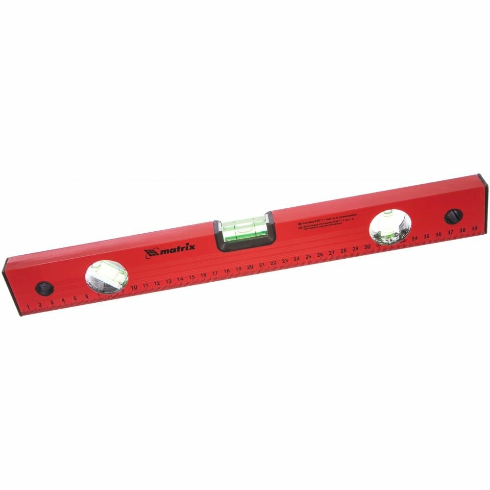 Уровень алюминиевый, 400 мм, 3 глазка, красный, линейка// Matrix