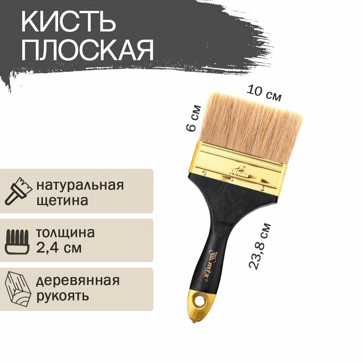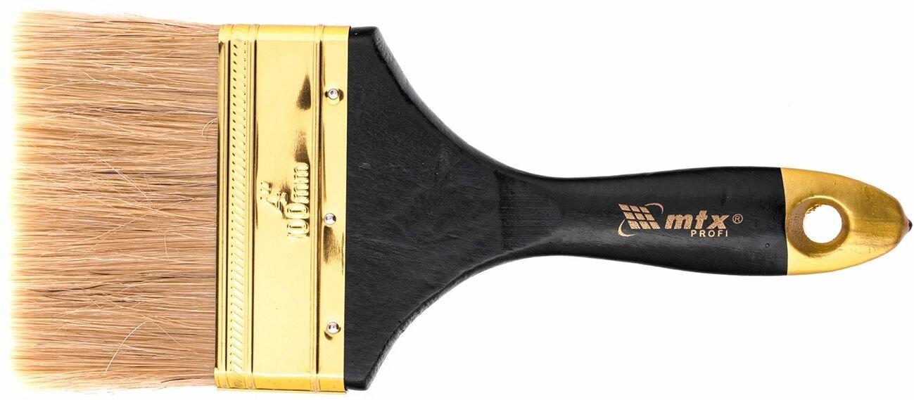 Кисть плоская MTX Профи 4" с деревянной ручкой из натуральной щетины. Кисть применяется для работ с масляными красками и лаками, устойчива к агрессивным составам. Кисть разработана специально для профессиональных работ.