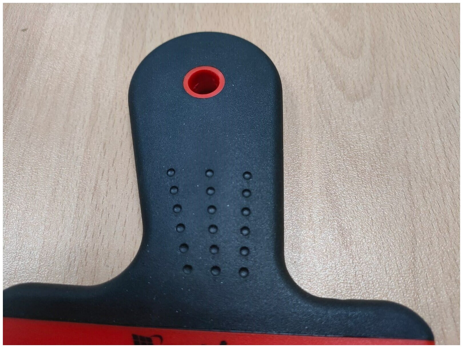 Шпатель имеет профилированное полотно из нержавеющей стали. Двухкомпонентная (пластик+резина) ручка утолщена в зоне охвата. Предназначен для нанесения, разравнивания и сглаживания шпаклевочного слоя на поверхности.