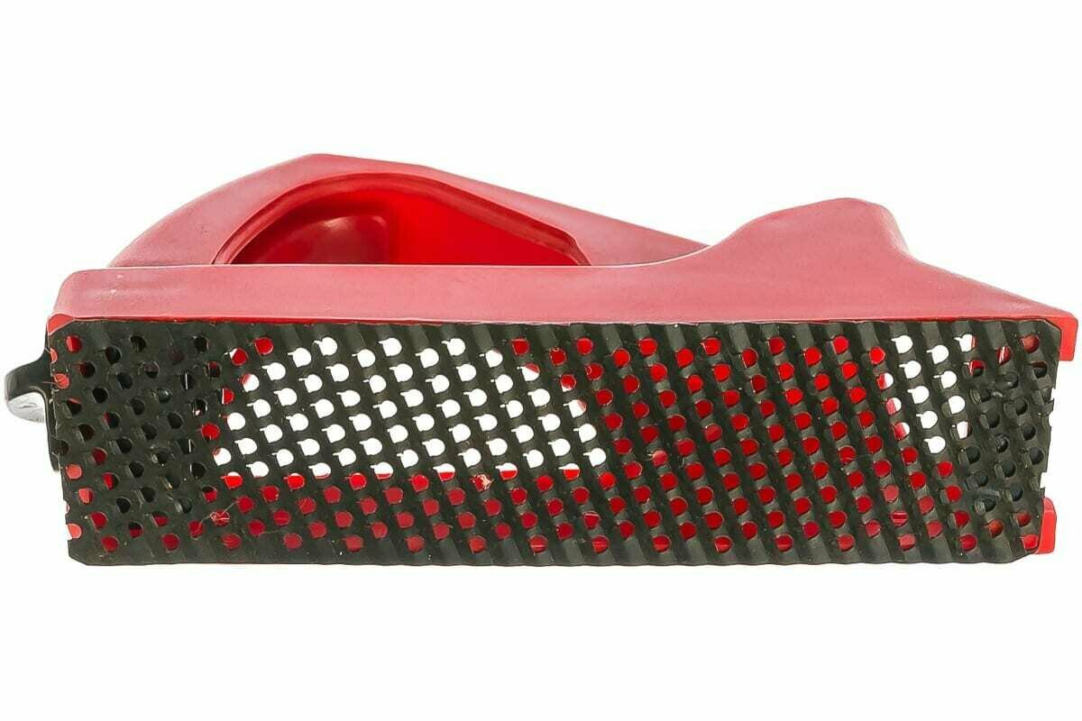 | Прочие особенности и свойства | Обдирочный рубанок изготовлен из пластмассы. Инструмент имеет крепления, позволяющие быстро и легко заменять использованные рабочие полотна. В конструкции полотна предусмотрены специальные отверстия для вывода стружки. Обдирочный рубанок используется при обработке гипсокартона, пластмасс, фибергласа и других легкообрабатываемых материалов. Длина площадки 140 мм |