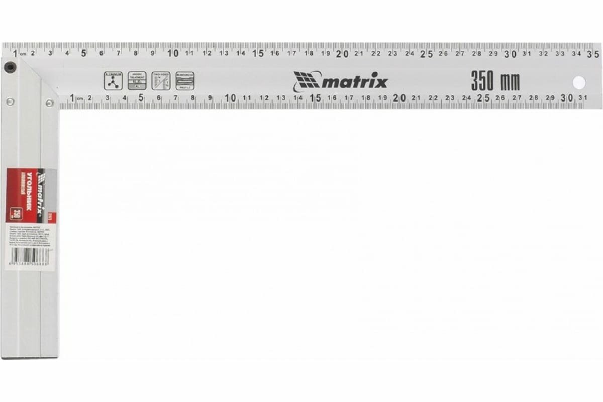Литой алюминиевый угольник 350 мм MATRIX оснащен двухсторонней разметкой, для удобства и точности выполнения измерительных работ. Литой корпус изготовлен из алюминия и имеет специальное анодированное покрытие. Данный инструмент используется при проверки прямых углов, при обработке и сборке изделий.