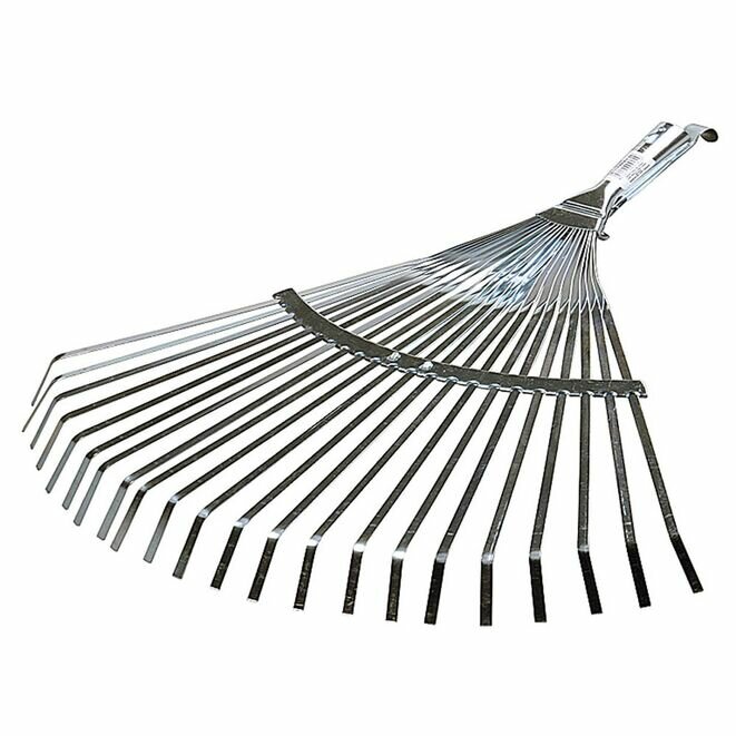 | Прочие особенности и свойства | Грабли веерные RACO регулируемые, 22 плоских зубца, гальванизированное покрытие, 300-450 мм,находят широкое применение во время садовых работ. Грабли применяются для очистки огородов, газонов, и других почвенных поверхностей от скошенной травы, листьев и другого мусора. Ширина рабочей части, в диапазоне от 300 - 450 мм, регулируется с помощью механизма фиксации зубцов, благодаря чему можно регулировать сбор, как мелкого, так и крупного мусора. Зубцы изготовлены из высококачественной пружинной стали, которая надежно защищает грабли от изгибов, изломов и прочих повреждений. Грабли оснащены 22 зубцами плоского профиля. Защиту от коррозии зубцам обеспечивает специальное гальванизированное покрытие. В качестве ручки используется черенок диаметром 25 мм. (в комплект не входит). |