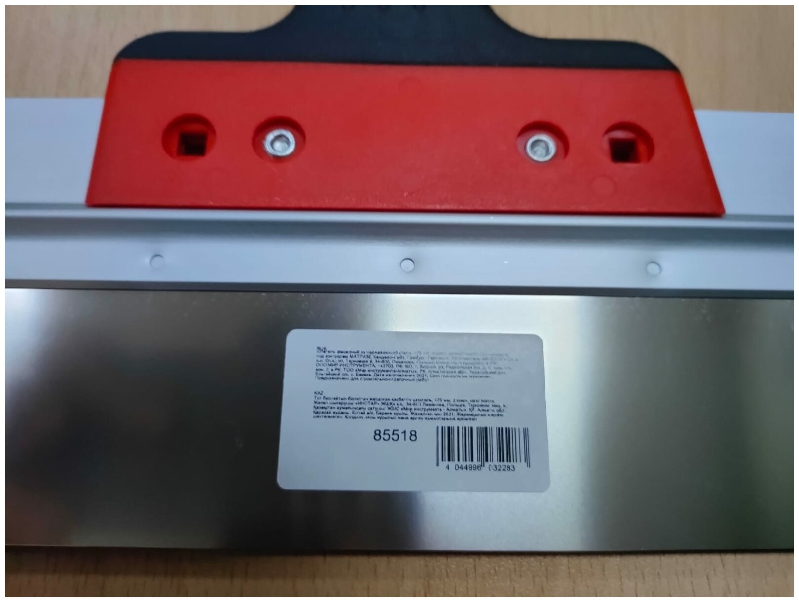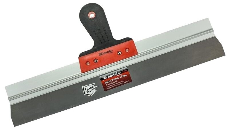 | Прочие особенности и свойства | Шпатель имеет профилированное полотно из нержавеющей стали. Двухкомпонентная (пластик+резина) ручка утолщена в зоне охвата. Предназначен для нанесения, разравнивания и сглаживания шпаклевочного слоя на поверхности. |