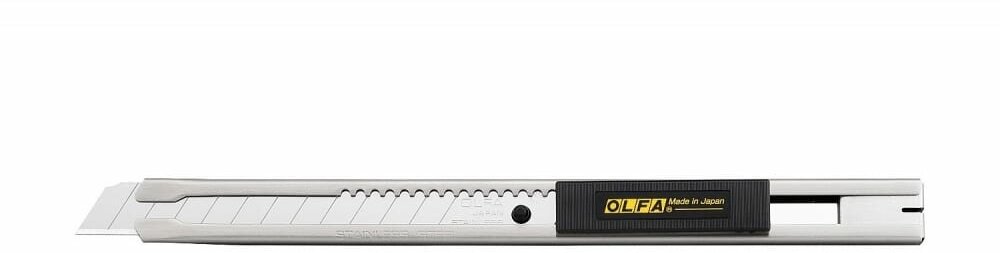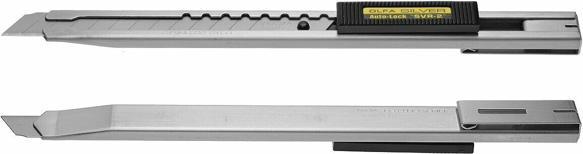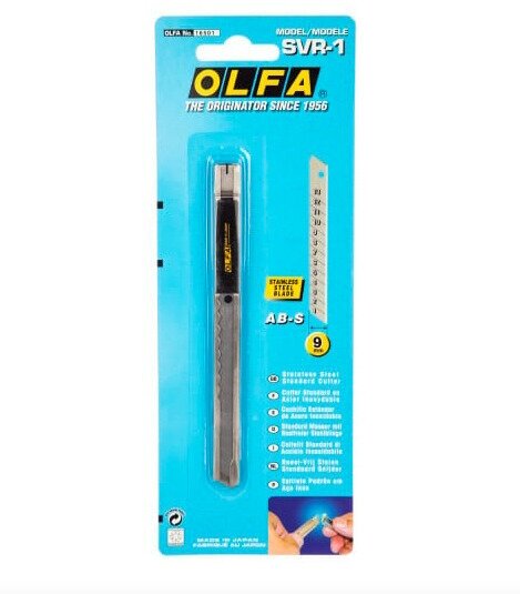 Стандартный нож OLFA (Олфа) - это нержавеющий профессиональный нож, оснащенный механизмом автоматической фиксации лезвия, а также клипсой для крепления и отламывания сегментов). Стандартный нож OLFA (Олфа) применяют для разрезания бумаги, картона, пленки, при аппликациях, графических работах и т.п.